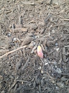 ハウスの作業を終えてからしばらくして、5棟目ハウスに小さなアスパラの赤ちゃんが顔を出しました!