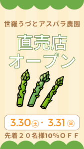 アスパラを1.000円以上お買い求めの方へ、合計金額から10%OFFさせていただきます!